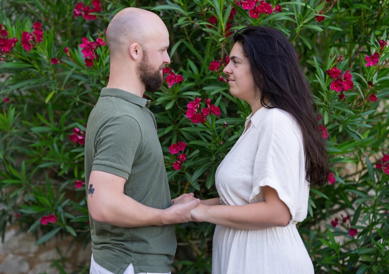 Que ce soit pour annoncer votre mariage, décorer votre faire-part ou simplement garder un souvenir fort de cette période unique, cette séance raconte le début de votre aventure à deux — naturellement, simplement, avec tout le cœur.