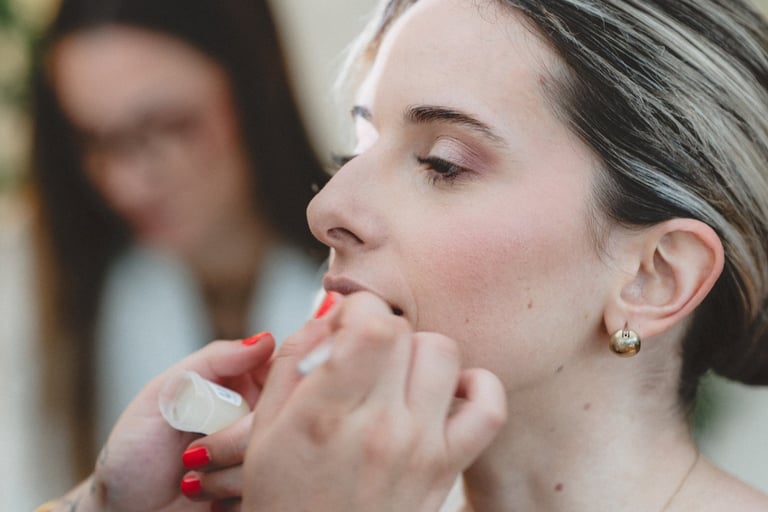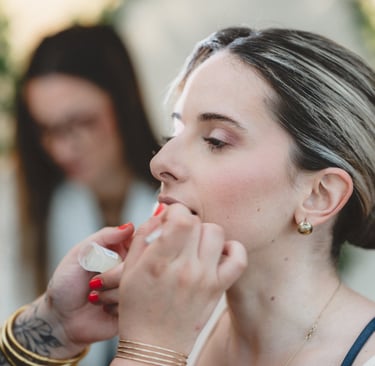 Maquillage et coiffure par une professionnelle pour la future mariée lors de la séance d'engagement