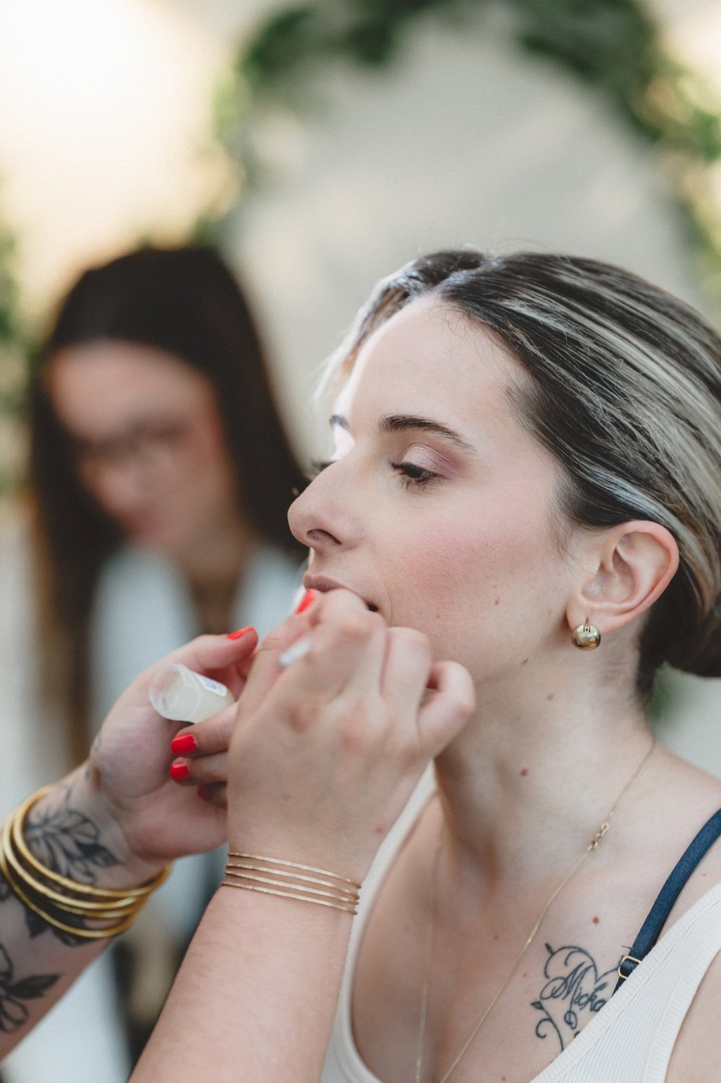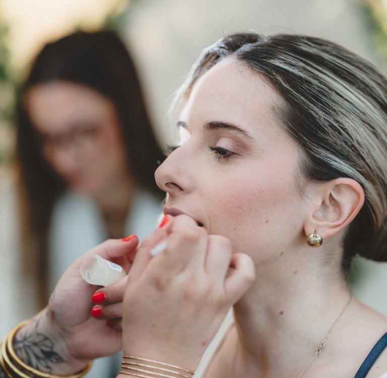 Maquillage et coiffure par une professionnelle pour la future mariée lors de la séance d'engagement